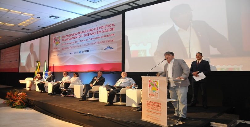 A Mesa de abertura foi composta pelo coordenador da Comissão de Política, Planejamento e Gestão em Saúde da Abrasco, professor Alcides Miranda; o presidente da Abrasco, professor Gastão Wagner; a presidente da Fiocruz, Nísia Trindade de Lima; o presidente do Conselho Nacional de Saúde, Ronald Ferreira; a Magnífica Reitora da Universidade Federal do Rio Grande do Norte, professora Ângela Maria Paiva Cruz; o diretor da Organização Pan-Americana da Saúde – OPAS, Renato Tasca; o secretário estadual de Saúde, George Antunes e o presidente do 3º Congresso de Política, Planejamento e Gestão em Saúde, professor Cipriano Maia.