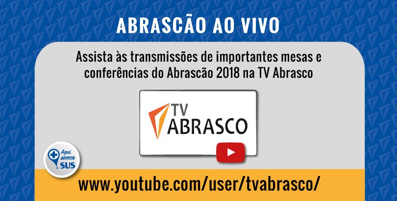 Um Abrascão 2018 sem fronteiras está sendo preparado para levar, mais longe e com maior interatividade e engajamento, este 12º Congresso Brasileiro de Saúde Coletiva. Todas as transmissões ao vivo poderão ser acompanhadas na TV Abrasco, o canal da Abrasco no Youtube.