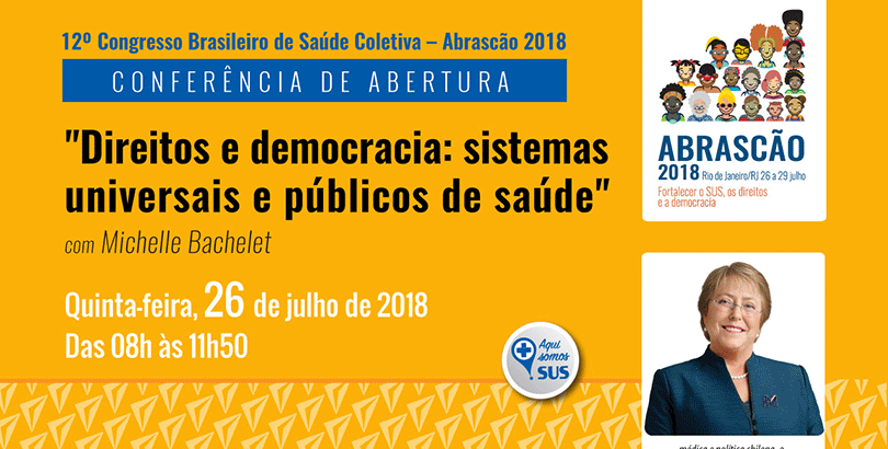 Abertura do Abrascão 2018 e Conferência de Abertura ‘Direitos e democracia: sistemas universais e públicos de saúde’ com Michelle Bachelet.