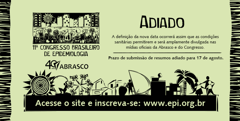 Diante da necessidade de proteger a saúde de todas e de todos os envolvidos na realização do 11º Congresso Brasileiro de Epidemiologia, a Comissão Organizadora do Congresso e a Diretoria da Associação Brasileira de Saúde Coletiva (Abrasco) informam o adiamento do evento, que ocorreria entre os dias 14 e 18 de novembro, em Fortaleza, CE.