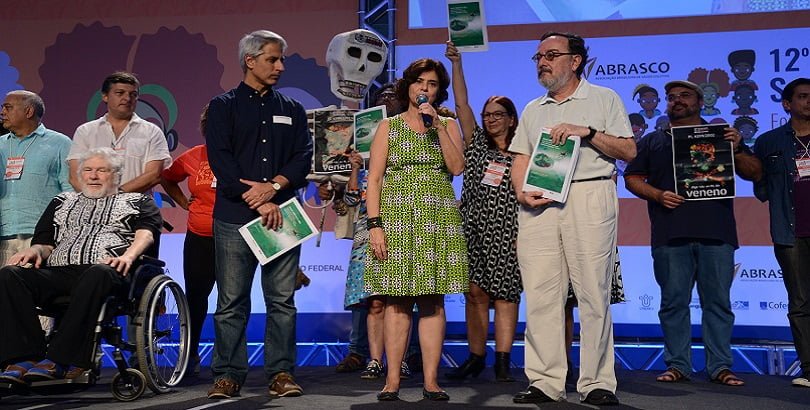 Em um ato durante o 12º Congresso Brasileiro de Saúde Coletiva, o Abrascão 2018, um coletivo de pesquisadores da Abrasco lançou uma versão atualizada do Dossiê Científico e Técnico² contra o Projeto da Lei (PL) do Veneno 6299/2002 e a favor do Projeto de Lei que instituiu a Política Nacional de Redução de Agrotóxicos – PNaRA no sábado, 28, no campus Manguinhos da Fundação Oswaldo Cruz, no Rio de Janeiro. O dossiê é uma compilação de notas técnicas já lançadas contra o Pacote do Veneno e foi entregue ao presidente da Comissão que analisa o PL da PNaRA.