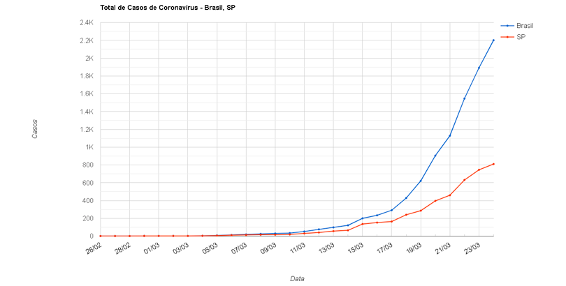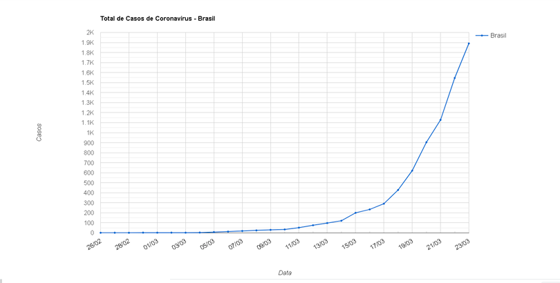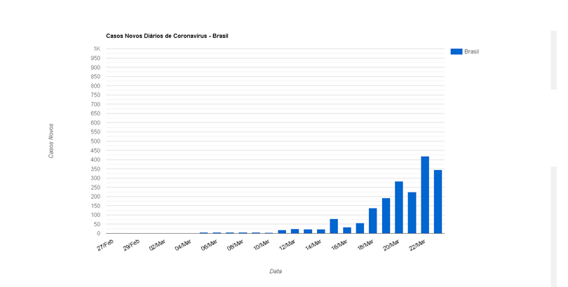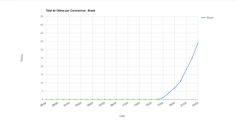 Ao final de cada dia, são inseridos os dados oficiais do Ministério da Saúde, através da plataforma Google App Script. Acesse e compartilhe os gráficos.