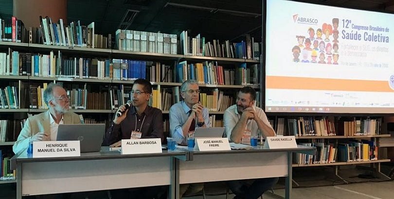 Representantes do Brasil, Espanha e Portugal discutiram os ‘Impactos da austeridade fiscal na Atenção Primária à Saúde’, durante o terceiro dia de programação do 12º Congresso Brasileiro de Saúde Coletiva. A Mesa Redonda foi coordenada por Allan Claudius Queiroz Barbosa e contou com a participação de Henrique Manuel da Silva Botelho – Ministério da Saúde de Portugal; José-Manuel Freire – Escuela Nacional de Sanidad-Instituto de Salud Carlos III e ainda Davide Rasella – Fiocruz.