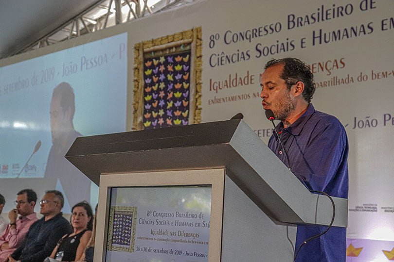 Martinho Braga e Silva, presidente do congresso, iniciou seu discurso enfatizando os 40 anos da Abrasco – a segunda cerimônia do dia – e pautou-se no tema do congresso “Igualdade nas Diferenças: a construção do bem-viver e do SUS”, presente nos pilares e nuances do 8º CBCSHS: “É isso que vamos fazer aqui: promover um debate sobre o valor da igualdade, um debate no qual nossas diferenças possam caber em cada uma das mesas-redondas, rodas de conversa e demais atividades que compõe esse congresso. Igualdade, não desigualdade! Diferença, não indiferença!”, afirmou.