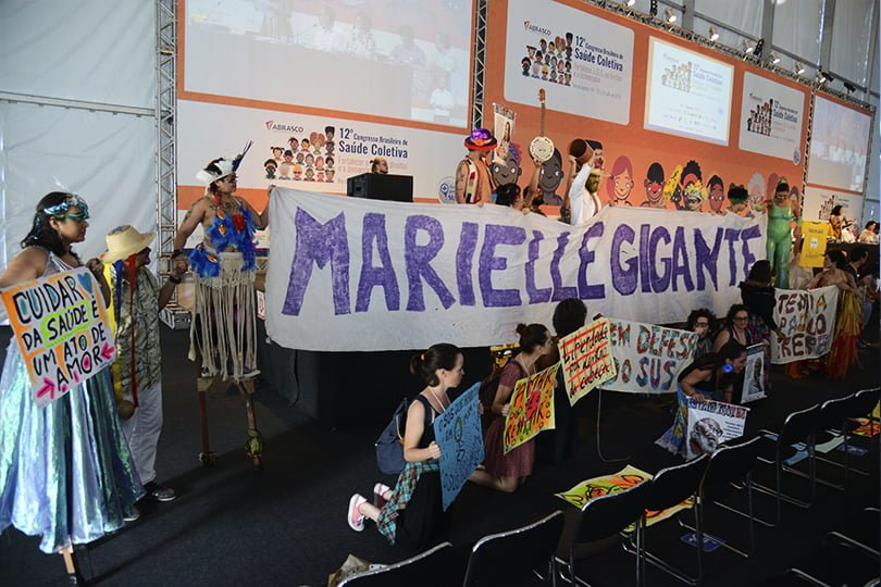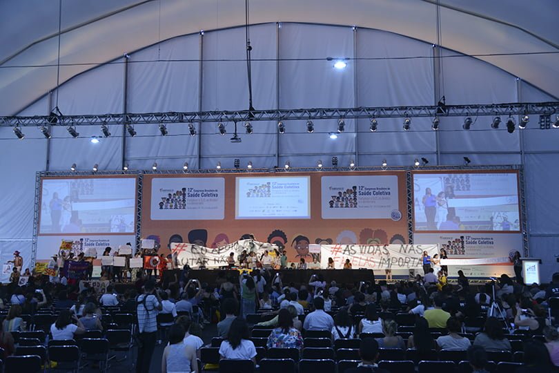 Nesse momento, diversos militantes, artistas e coletivos adentraram o auditório trazendo antigas e atuais bandeiras de luta, como “Trancar não é tratar”; “Saúde Coletiva também é Graduação”, “Com o SUS no coração”; “Saúde não é mercadoria”; “Cuidar é um ato de amar”, juntas com novas demandas capitaneadas nas faixas “Vidas nas favelas importam” e “Lutar não é crime”, numa celebração à diversidade e à diferença. Na leitura do manifesto, foi reafirmada a importância da pluralidade do movimento sanitário, pautada a diversidade de expressões do direito à saúde e sua interelação com a conjuntura e foram feitas críticas aos valores praticados no evento.