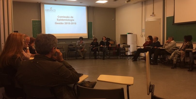 O professor Antonio Fernando Boing, da Universidade Federal de Santa Catarina, é o novo coordenador da Comissão de Epidemiologia da Abrasco. Boing, que presidiu o mais recente Congresso de Epidemiologia de Florianópolis, foi escolhido pelos membros da Comissão que participaram da reunião na manhã de 22 de maio, em São Paulo. Maria Amelia de Sousa Mascena Veras, da Faculdade de Ciências Médicas da Santa Casa de São Paulo, que coordenou a Comissão na gestão 2015 – 2018, apresentou uma síntese do trabalho realizado pela comissão e ainda os novos nomes e instituições que compõem agora o grupo: – “É muito bom ver aqui tantos rostos novos reforçando o compromisso com a Epidemiologia e com a Abrasco”, disse Maria Amelia. Para além da construção da 10ª edição do Congresso Brasileiro de Epidemiologia, Maria Amelia enfatizou o acompanhamento da situação da epidemia de microcefalia no Brasil e participação na articulação para que as revistas cientificas do Fórum de Editores da Abrasco publicassem artigos e notas técnicas referentes à doença e ainda a representação da diretoria da Abrasco em reuniões e atos públicos pela ciência no Brasil como demandas importantes da Comissão e explicou: – “Quando tomamos posse, constituímos 4 grupos de trabaho: Ensino de Epidemiologia; História da Epidemiologia no Brasil; Relações Epidemia e Políticas Pública e ainda o grupo da Pesquisa. Infelizmente praticamente não encaminhamos estes grupos de trabalho, reitero que estes grupos foram tarefas que não conseguimos realizar mas penso que os grupos devem ser manter”, pediu. No final da apresentação a professora agradeceu aos colegas que compuseram esta comissão e à diretoria da abrasco.