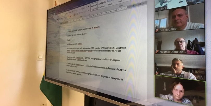 O Centro de Relações Internacionais em Saúde da Fiocruz – CRIS recebeu a reunião do Comitê Assessor de Relações Internacionais da Abrasco na manhã da quarta-feira, 11 de setembro. No Rio de Janeiro estavam Paulo Buss, coordenador do CRIS; Ligia Giovanela, coordenadora da Rede de Pesquisa em Atenção Primária à Saúde da Abrasco e ainda Carlos Silva, secretário executivo do Cebes. Remotamente, através da internet, participaram Luis Eugenio Portela, conselheiro da Abrasco; Ana Maria Malik, professora na Fundação Getúlio Vargas; Márcia Castro, Departamento de Saúde e População Global da Escola de Saúde Pública de Harvard; Adriano Massuda, Escola de Saúde Pública de Harvard; Karina Ribeiro, International Epidemiological Association – IEA e Naomar Almeida Filho, vice-presidente da Abrasco.