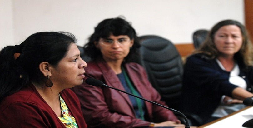 A força e a sensibilidade do testemunho de Sandra Benites, liderança indígena do povo kuikuro e estudante de mestrado do Museu Nacional da Universidade Federal do Rio de Janeiro, que silenciou o auditório – “Nasci na aldeia Porto Lindo, no Mato Grosso do Sul, onde aprendi a ler e escrever. Já casada fui morar no Espírito Santo e cursei o Magistério Indígena na Universidade Federal de Santa Catarina. Hoje moro no Rio e faço o mestrado no Programa de Pós-Graduação em Antropologia Social do Museu Nacional da UFRJ. Mas não falar da minha trajetória, vim aqui para contar a todos vocês que nunca deixamos de sofrer violência no Brasil, embora ela seja invisível para vocês, juruá. Hoje temos acesso às tecnologias que servem para fazermos denúncias e colocar a sociedade para questionar. Mas a sociedade brasileira não nos conhece e é tudo muito angustiante porque todas as coisas se fecham para nós, indígenas, quando abraçamos alguma causa acabamos por viver aquilo. Para mim não estamos falando hoje de retrocesso, a violência sempre aconteceu e agora está transbordando”, lamentou Sandra.