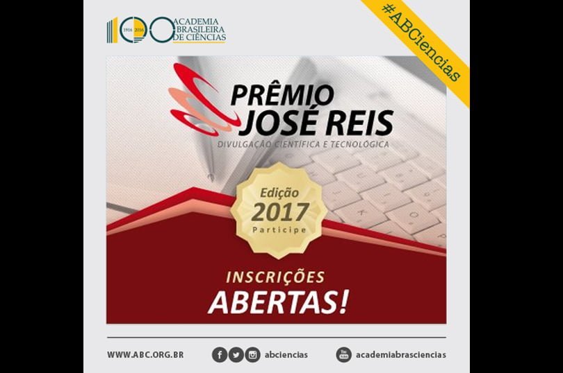Prêmio José Reis de Divulgação Científica: Iniciativa do Conselho Nacional de Desenvolvimento Científico e Tecnológico (CNPq) juntamente com a Academia Brasileira de Ciências (ABC), o já tradicional Prêmio José Reis de Divulgação Científica chega em 2017 a sua 37ª edição prestando reconhecimento a um(a) jornalista profissional de destaque na difusão da Ciência, da Tecnologia e da Inovação nos meios de comunicação de massa.