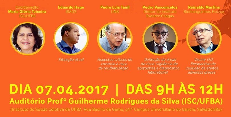 O debate começará às 09h00 com a apresentação da situação atual que será feira por Eduardo Hage, do Instituto Sul Americano de Saúde de Governo em Saúde – ISAGS. Hage é professor do Instituto de Saúde Coletiva da UFBA e da Escola Nacional de Saúde Pública – Fiocruz e ainda consultor ad hoc da Organização Mundial da Saúde. O professor fará um histórico dos últimos eventos mais relevantes sobre a Febre Amarela, desde o 1999 – “Vou apresentar as hipóteses que foram levantadas por alguns pesquisadores sobre a sequencia de ciclos de expansão da circulação do vírus e, principalmente as principais lacunas para entender o comportamento da Febre Amarela neste período, bem como as implicações para o seu controle. Ou seja, não pretendo trabalhar com respostas (recomendações) fáceis de fazer no “calor” da emergência, mas buscar aprofundar o debate sobre este tema que não tem tido solução desde há quase 20 anos”, explica Eduardo.