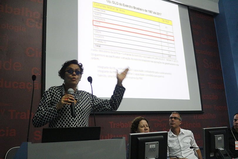 Para fechar o debate, Jacqueline Muniz, professora da Universidade Federal Fluminense (UFF) e especialista em segurança pública, falou sobre despolitização e segurança pública: controles e vigilância ampliadas em regime de exceção. A professora falou sobre construção de uma narrativa de segurança pública e o caso do Brasil, citando algumas capacidades do governo sobre populações e territórios. Jaqueline questionou o assunto da proteção ou segurança pública.