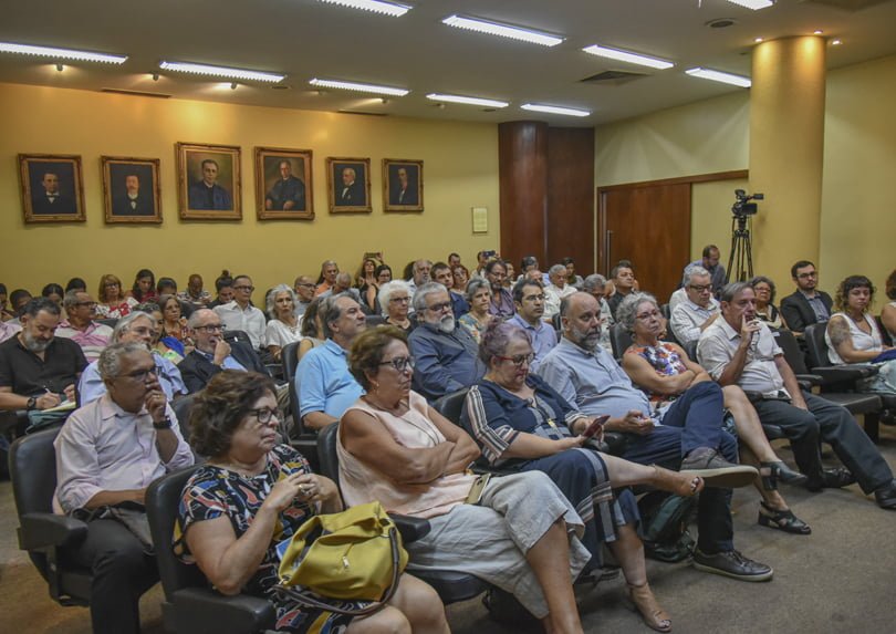 Reeleita para mais um mandato, a presidenta Lúcia Souto abriu a cerimônia conclamando a memória e a fibra daqueles que fazem da utopia a prática política concreta na luta pelo direito à saúde.