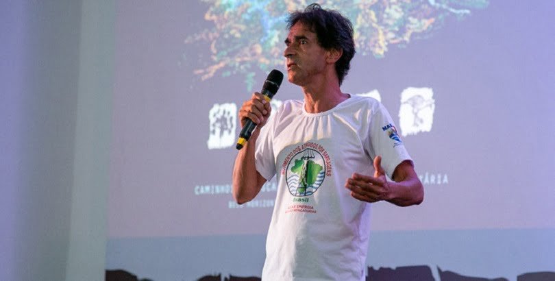 Zé Geraldo, militante do Movimento dos Atingidos por Barragens (MAB), trouxe dados geográficos, físicos, químicos e biológicos, que mostraram as consequências após o rompimento das barragens em Mariana e Brumadinho: – “São 4 anos do crime na bacia do rio Doce e 1 ano do crime no rio Paraopeba, não se trata de um desastre ou de uma tragédia, é um crime. O nome é crime. Ficou mais do que provado que as mineradoras estavam cansadas de saber que as barragens iriam se romper, encontramos documentos com os valores já estipulados de indenizações que eles pagariam às vítimas! A Vale matou 700 quilometros de rio e está matando o litoral… as pessoas pagam hoje pela água envenenada que a indústria sujou. Quero fazer um pedido aqui no Simbravisa: olhem para questão da água após esses crimes, rico compra água mineral e pobre toma água de rio contaminado. Prestem atenção aos relatos de adoecimento, a maioria dos médicos aqui em Minas nem questionam se determinada doença pode ser fruto de contaminação e quem se beneficia é a empresa” disse Zé Geraldo.