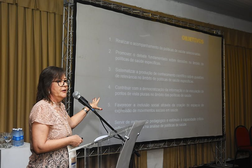 Última a se apresentar na mesa redonda, a pesquisadora Carmen Teixeira (ISC/UFBA) discorreu sobre métodos, estrutura, organização do trabalho e aportes teóricos para o monitoramento das 11 políticas de saúde, que é disponibilizado ao público como relatórios anuais na Matriz. O acompanhamento das políticas realizado pelos eixos, explica Carmen, permite uma ampla compreensão e análise da conjuntura brasileira. Sobre os temas que atravessaram essa conjuntura, a professora destacou o agravamento da crise econômica, a instabilidade institucional, a violência social, o desmonte das políticas sociais e a desconstrução do SUS. “Temos vivido um aprendizado institucional incrível nesses últimos quatro anos. […] Temos feito um esforço enorme para dialogar com os movimentos e com os gestores, sabemos que esse é um grande desafio, que é preciso abrir o diálogo para além dos muros da academia para que a gente não fique falando só para a gente mesmo”, comentou.