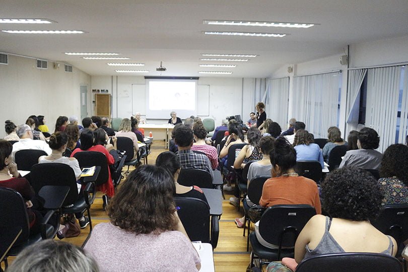 Helena David falou sobre a experiência do Curso Formação Histórica e Política para estudantes de saúde, promovido pela Uerj em parceria com outras 22 instituições públicas e privadas. Segundo a professora, o curso nasceu de uma demanda dos alunos, que queriam “ler” a realidade política com mais clareza, e foi construído como um curso de extensão, com base na educação popular. A equipe do curso produziu textos e vídeos para compor o material da formação, que incluía encontros presenciais e aulas à distância. “Nos encontros, discutíamos política e saúde, lembrando que saúde se produz nas relações sociais”, disse Helena, acrescentando que o curso conseguiu estimular os alunos e que há uma demanda dos estudantes para que o curso seja realizado novamente.