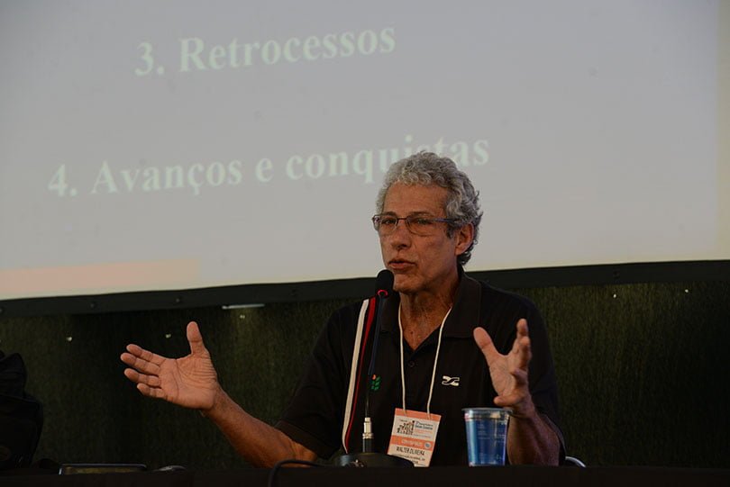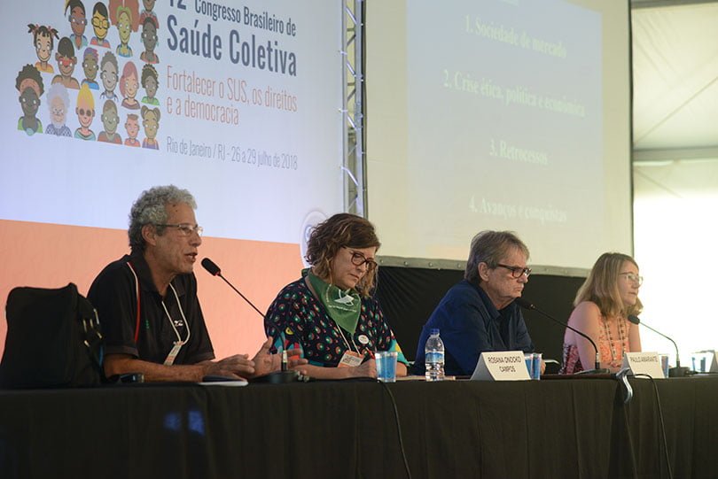 Discutir os retrocessos na Política Nacional de Saúde Mental foi o objetivo de uma mesa-redonda promovida na tarde do dia 29 de julho (domingo), no 12º Congresso Brasileiro de Saúde Coletiva (Abrascão). Para falar sobre isso, a mesa contou com a coordenação do vice-presidente da Abrasco, Paulo Amarante, e mais três debatedores: Walter Oliveira, professor da Universidade Federal de Santa Catarina (UFSC) e ex-presidente da Associação Brasileira de Saúde Mental (Abrasme); Mônica Nunes, professora do Instituto de Saúde Coletiva da Universidade Federal da Bahia (UFBA), e Rosana Onocko, professora da Universidade Estadual de Campinas (Unicamp).