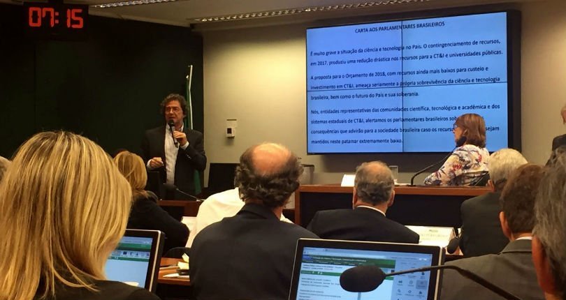 Tais números estão na “Carta aos Parlamentares Brasileiros” e foram apresentados na audiência pública realizada pela Comissão de Ciência e Tecnologia da Câmara dos Deputados na terça-feira, dia 10. Ildeu Moreira, presidente da SBPC, lembrou aos parlamentares que 23 ganhadores do prêmio Nobel enviaram uma carta ao presidente Michel Temer, alertando que os cortes podem comprometer o futuro do Brasil. “Nos envergonha que a gente veja que cientistas do exterior, desse alto quilate, tenham mais sensibilidade com a ciência brasileira que nossos governantes”, afirmou o dirigente, conforme traz a matéria da Agência Câmara Notícias. Junto à audiência, foi entregue a petição pública que exige o fim do contingenciamento, com mais de 82 mil assinaturas recolhidas pelo movimento Conhecimento sem Cortes. A petição continua aberta a novas assinaturas. Participe!