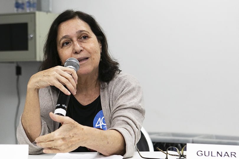 Gulnar articulou sua participação em quatro eixos, apresentando a situação de saúde do país a partir dos principais indicadores; a conquista do SUS e seu efeito no cenário epidemiológico, e o quadro político recente.